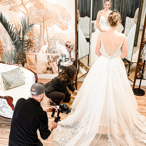 B-roll day was lots of fun! Chris Chapman operated the drone, operated a second camera for extra b-roll, and our production assistant, Casey, helped out with lighting. Camera operator and director, Ryan Cummings, had a vision for an intro that showed how Katherine is a one-woman show. From design conception to the final fitting, Katherine does it all!